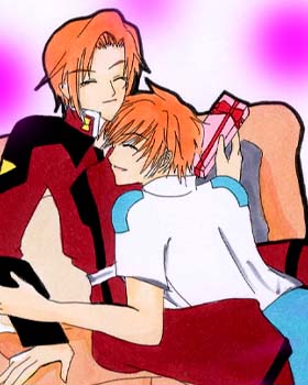▼鳥好きの同期から、 「手のりインコの雄雌を一緒にしたら手のりでなくなった」 と聞いてなんとなく。。勢いで。。 今書き途中の風花とロレッタの話を付けりゃーもうちょっと話繋がるんだけどね。。。。 ごめんなさいm(_ _;)m つーか、風花たちがカイトのことをなんて呼んでいるのか不明。。ってか。色々不明。。。 ってか、『やきもち』って。前もつけてるんだけどさ。。。 やっぱりカップルにはつきものです!(力説) 普段一緒にいると気づかないけど、第三者が入ることによって、生じるもので、乗り越えれば更なる「愛」←病気 なんにしても m(::)m 書き直します☆(ならあげるなよ。。) 書き逃げ! 『…はないか?』 耳の奥で木霊する、今でも脳裏に鮮明に焼きついている一言。 ■□■□■□■ 窓の外から聞える小さな合唱。それが虫の鳴き声と認識するのに数秒かかった。窓から注ぐ衛星の反射光は柔らかく、優しく俺と隣人を照らす。 隣人が起きない様に体制はそのまま、眼だけを壁掛けのデジタルに移す。その先の表示パネルの数字は薄暗く『1・2・3』と順番に光っていた。 只でさえ今回の任務は気を使う任務で、注意力の足りない(しょっちゅう劾や風花にも言われてるけど)俺には向かない任務で、正直、普段のMS戦より疲れた。そしてさらにその後の行為で疲労が蓄積されて、変な時間に寝てしまい、こうして変な時間に眼を覚ましてしまった。 ちなみに俺の隣で上半身裸のまま寝ているのは傭兵家業では名の知れた『サーペーントテール』のリーダ、叢雲劾。この業界ではちょっと恐れられている人間だけど、寝顔は結構かわいかったりする。俺の弱さの証である顔の傷や体中の傷を『きれいだ』と言うちょっとかわった奴。でも本当にすごい奴。 そんなすごい劾の無防備な寝顔を見ている時はいつもちょっとした、いやかなりの優越感を味わえる。 今回の任務地は、地球と同じ様な衛星と恒星を持つ惑星。 この惑星近くの恒星からは、光源こそ取れるものの距離が離れすぎて熱源は足りないらしく、外気管理は全てコンピュータ制御とのこと。 夜間の外気は23度に設定され、虫たちには過ごしやすい気温みたいだか、俺にはちょっと肌寒く感じる。そのせいか、隣人の体温が心地よい。 ちなみにこの恒星の質量は太陽の数十倍もあるため、あと十数年で消滅するらしい。そうなるとこの惑星も衛星も一緒に…消滅する。 惑星・恒星・衛星。全てが微妙なバランスで成り立ち、一つでも欠けると全てが無に変える。いくら技術が進んだといてもまだ『人』には恒星の延命はできない。 今回任務は、この惑星の移住先となるコロニーの要人警護。 現在この惑星が有する資源や遺産等の権利や保護、移住に当たって色々揉めているらしく、会談が終わるまでの警護が任務。 そして、その要人は夕刻には何事もなく無事にまた空へ帰って行ったので、俺たちの任務も完了。(早々に片付いたのだが、依頼主の計らいで帰還は明日の早朝となった。) 俺たち二人にあてがわれた部屋はお世辞にも高級感はないが、小奇麗なそれなりの一室。 ────でも二人で一部屋って…。普通は個々に部屋をくれるもんだろ? 部屋に通され早々に俺の口から出したかった言葉。でも実際は、半分も言わないところでクライアントに報告して帰ってきた劾に塞がれた。 ■□■□■□■ ふと、ちょっと小腹が空いたのを感じ、よくよく思い返してみると変な時間に気を失っていたせいで夕飯にもありつけなかったことも思い出した。。 俺がこんな時間に起きて、小腹を空かす羽目になった原因は、今も規則正しい呼吸を繰り返している。 そしてふと見た隣のベット。 きれいに洗濯されてアイロンの効いたベットカバーには使った痕跡が全く、ない。 ────男二人でこの部屋使っているのに。。。これってまずいよな。。やっぱり。。 明日、俺たちが帰った後に掃除に来る人が不振に思わないように慌ててベットに転がり使用感を出す。 「これでいいっか。。あ」 変な動きをしたせいで、先ほど劾に注ぎ込まれたものが足の付け根を通過するのを感じた。 「…ばかやろう!」 隣のベットに小さく悪態をついてバスルームへ走る。 ■□■□■□■ 『キュ』 昔ながらの蛇口タイプの栓を捻って、劾の痕跡を流しだそうと大量の湯を浴びる。流しだそうとしているにうちに思い出した劾との行為で火照った体を一緒に冷ましながら。 そしてゆっくりと今日の任務を振り返える。 ────今日の任務はきっと劾一人でもできた任務だ。それなのになんで俺を連れて行ったんだ。。。 今日の任務が脳裏を巡る。 要人の警護。物陰に隠れて要人を暗殺しようとする奴らの排除。 確かに何度が要人は狙われた。でも、すべて照準が向けられる前に劾が排除していた。俺がやったことは特に何も、ない ────わからない。。。 聞くことは簡単だ。でもそれじゃ駄目なんだ。劾に頼ってばかりじゃ・・・。自分で考えて、答えを出せるようにならな